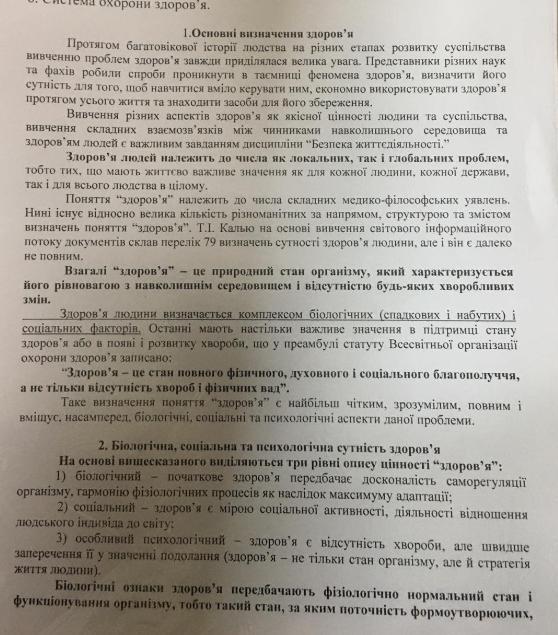 Поняття «здоровʼя» настільки складне і різнобічне, що на даний час існує 79 визначень сутності здоровʼя. Можна сказати, що здоровʼя – це природний стан організм, який характеризується його рівновагою з навколишнім середовищем і відсутністю будь-яких хворобливих змін, а також це стан повного фізичного, духовного і соціального благополуччя.