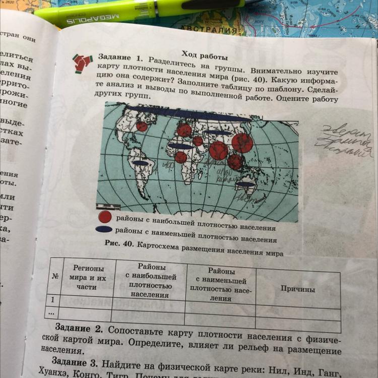 Разделить на группы внимательно изучите карту плотности населения мира какую информацию она содержит заполните таблицу по шаблону сделать анализ выводы по выполненной работе оцените работу других групп