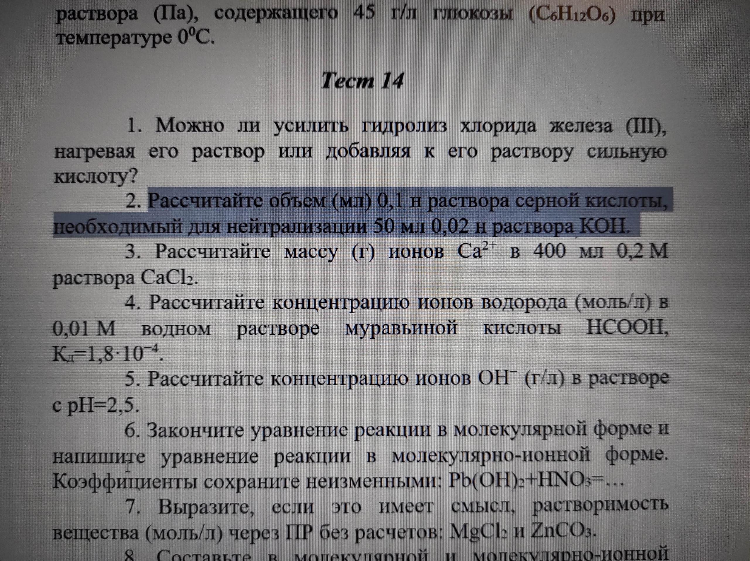 Cк = Сщ * Vщ / Vк = 0,02*50/0,1 = 10 мл