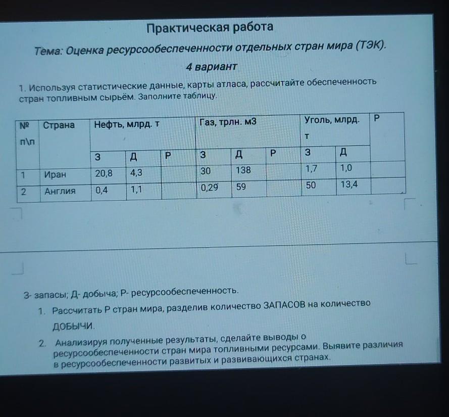 Делаем выводы что Иран(развивающиеся страны) обеспечен Нефтью и Газом лучше чем Англия(развитые страны),а Англия обеспечена лучше Углем.