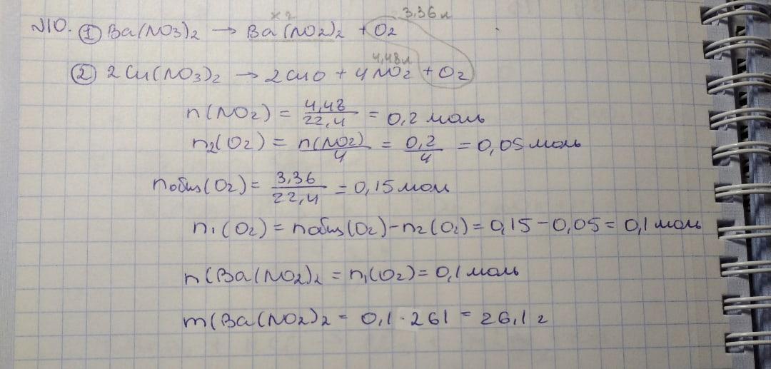 Смесь нитратов бария и меди прокалили, выделилось 3,36 л кислорода и 4,48 л оксида азота(4), объёмы газов измерены при нормальных условиях. Найдите массу нитрата бария смеси. Запишите ответ с точностью до десятых.