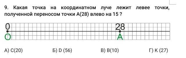 ответ в. потому что когда мы переносим точек А на 15 влево, мы 28 уменьшаем на 15, соответсвенно получаем 13.