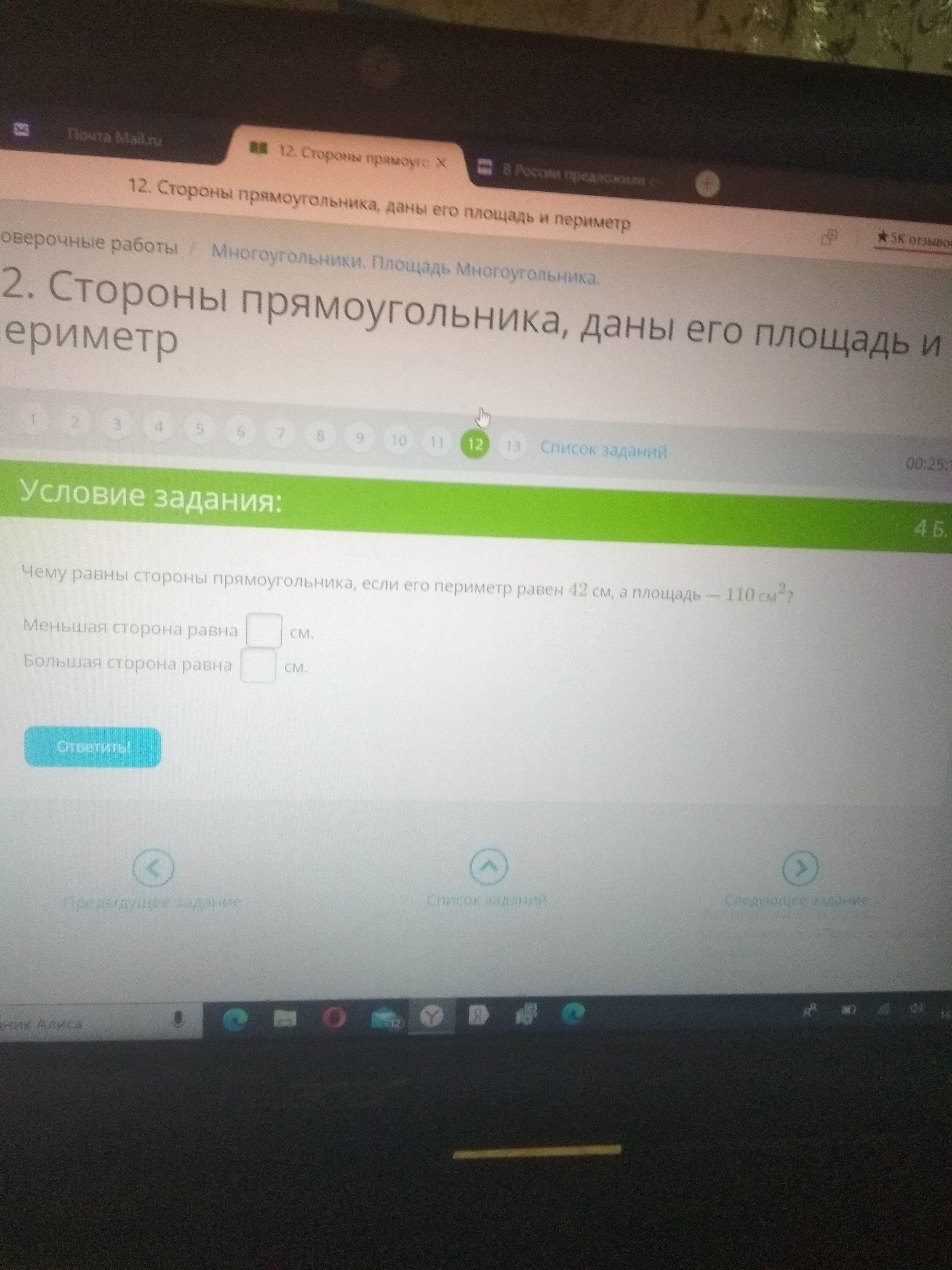 7*2=14 большая сторона