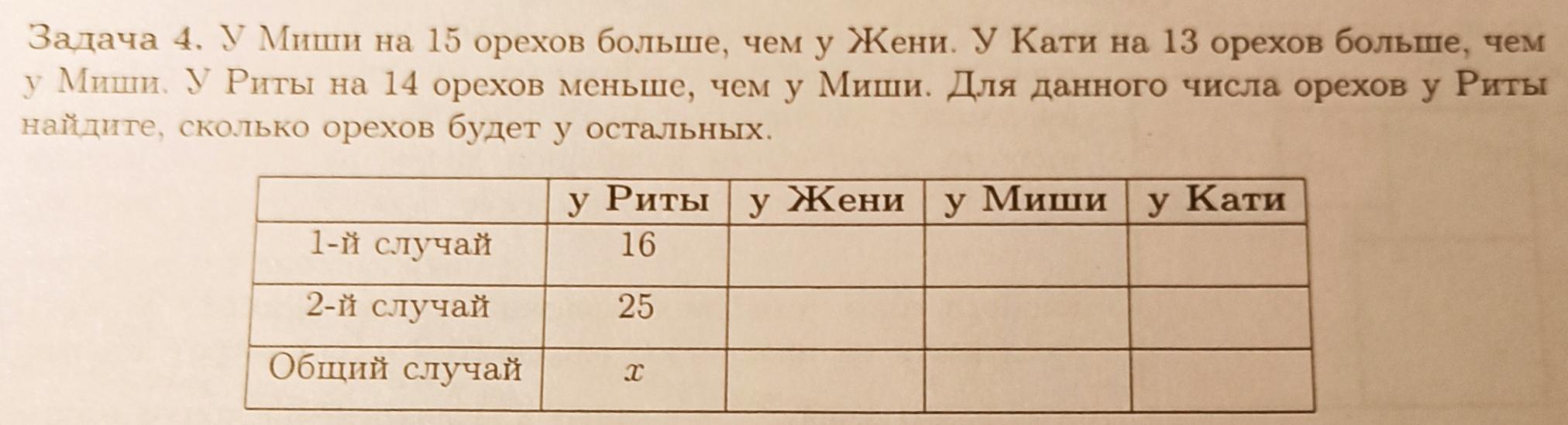 3.) (x + 14) + 13 = x + 27 (орехов) - у Кати.