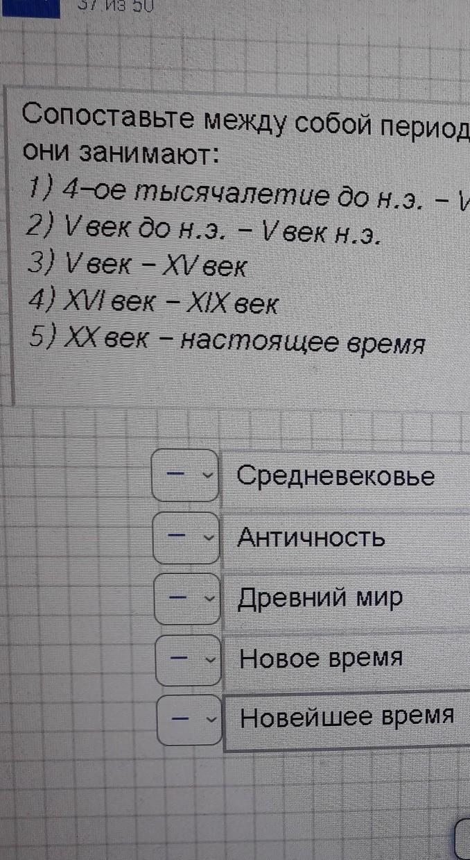 # 1. Сопоставить между собой исторические периоды, они занимают: