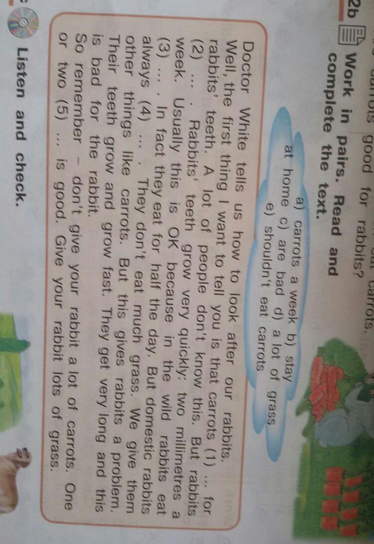 2) e) shouldn't eat carrots (Кроликам не стоит есть морковь)