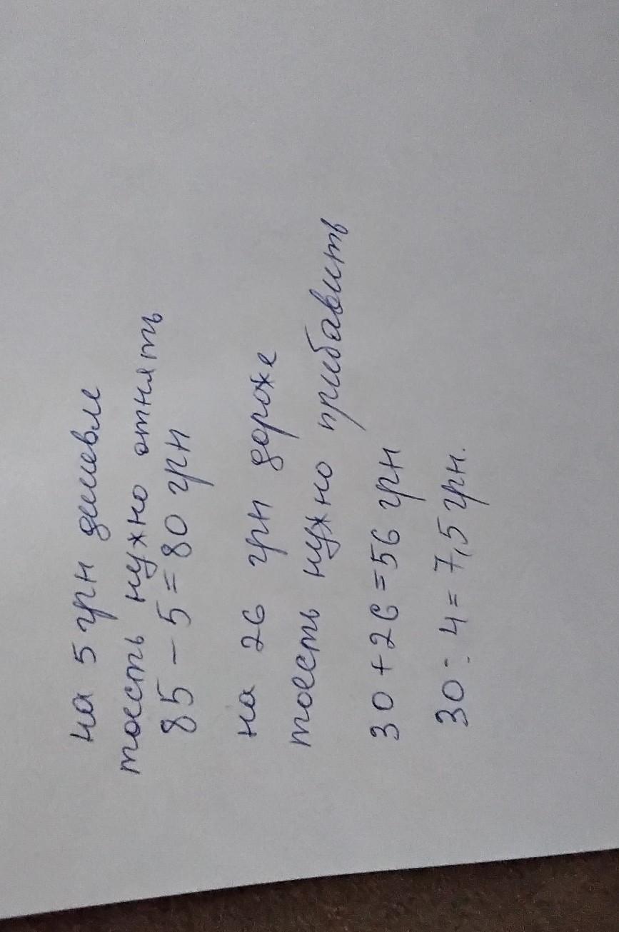 30 ÷ 4 = 7,5 грн - купюры по ... грн