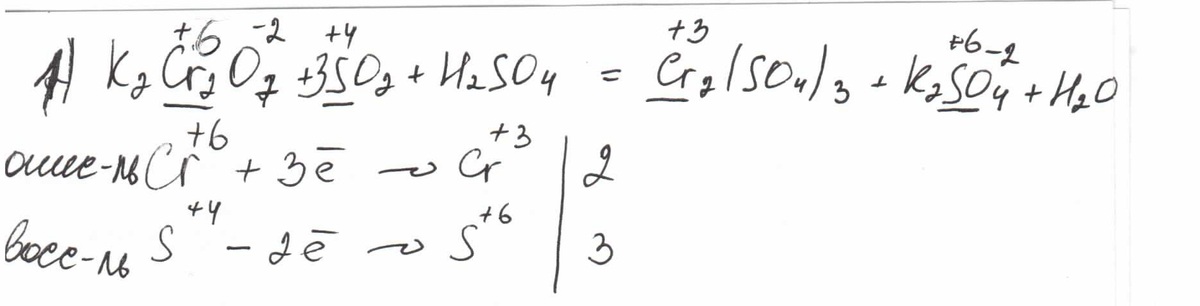 уравнять электронно-ионным методом,указать восстановитель и окислитель, 1) K2Cr2O2+SO2+H2SO4->Cr2(SO4)3+K2SO4+H2O