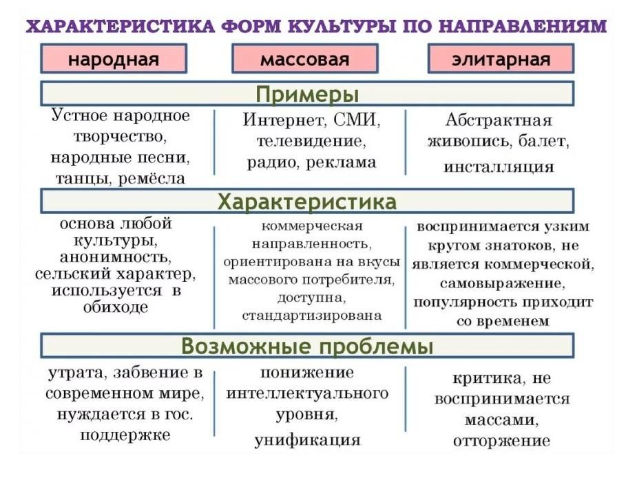 Виды культуры и их особенности (народная культура, массовая, элитарная)