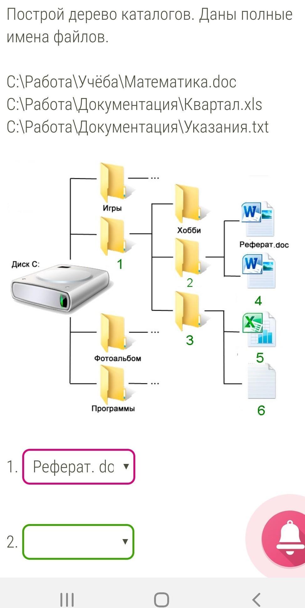 1) То есть C:\Работа\Учёба\Математика.doc = 1, 2, 4