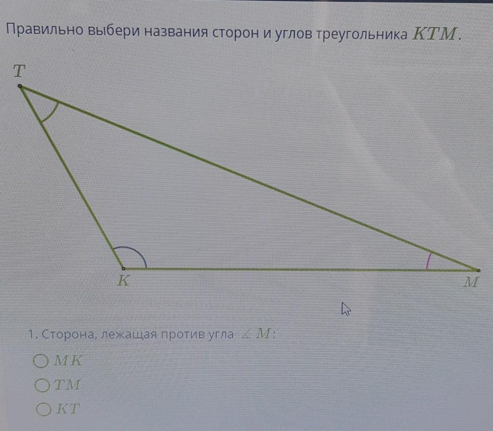 угол КТ. он лежит против угла М