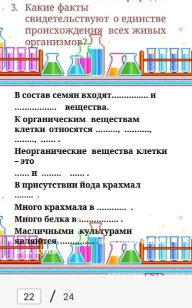 1.органические и неорганические вещества.2.семена пшеницы, подсолнечника и малины.