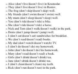 12. Alice (don’t live/doesn’t live) in Krasnodar.