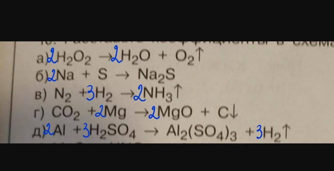 расставьте коэффициенты в схемах реакций. выберите реакции обмена.