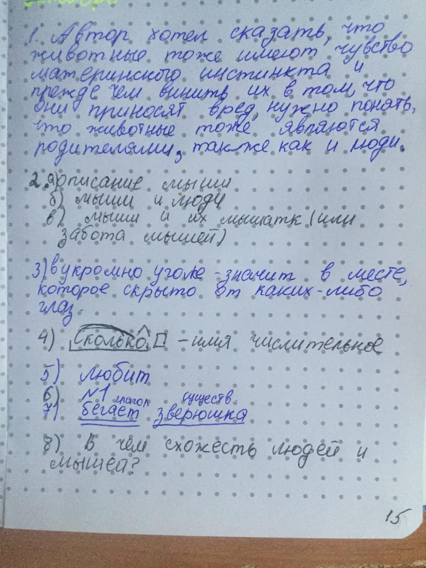 1) Основная мысль текста- автор рассказал историю мышки и отношение к этим животным от людей. Все люди их ненавидят, но животные находят любой способ, чтобы выжить. Эти животные отдадут жизнь за своих малышей, а человек замечает только себя.