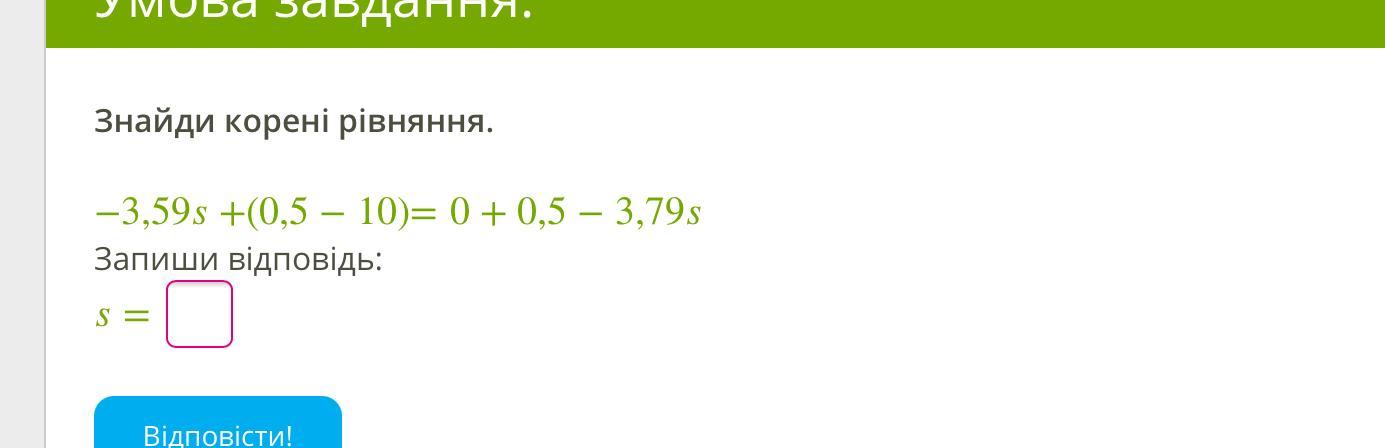 -3,59s-9,5=0,5-3,79s, -3,59s+3,79s=0,5+9,5, 0,2s=10, s=10:0,2=100/2=50