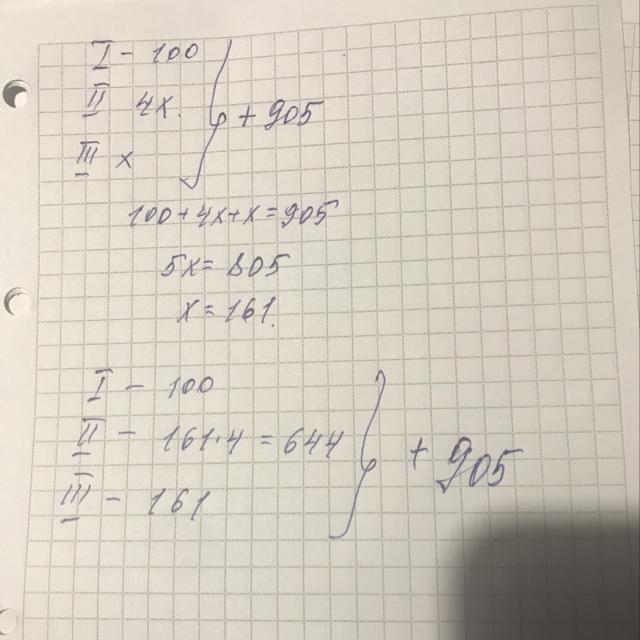 сумма трех натуральных чисел 905, первое из них наименьшее трехзначное число, а второе в 4 раза больше третьего. Найдите эти числа