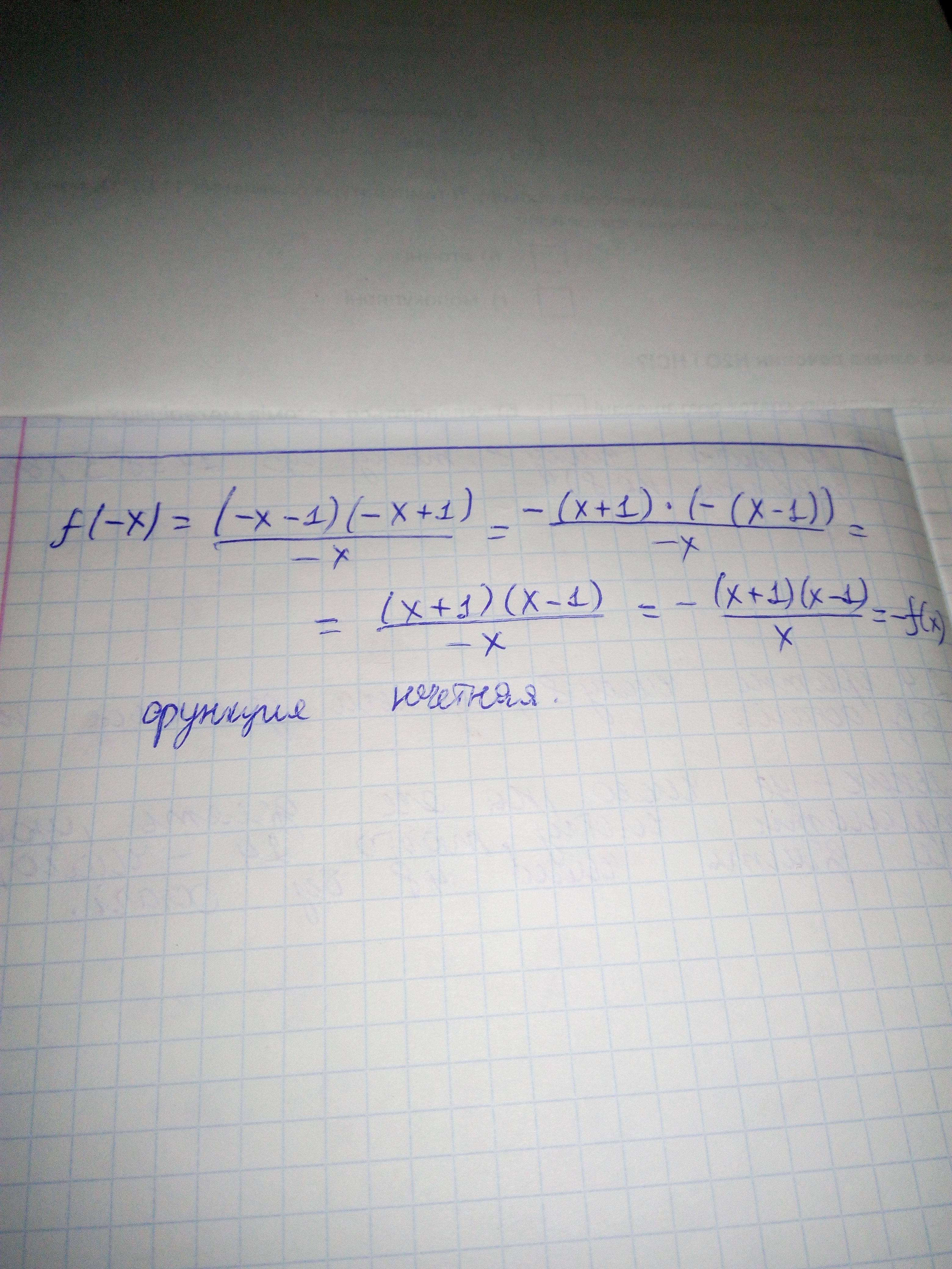f(-x) = (-x-1)(-x+1)/(-x) = - (х+1)(х-1)/х = -f(x)