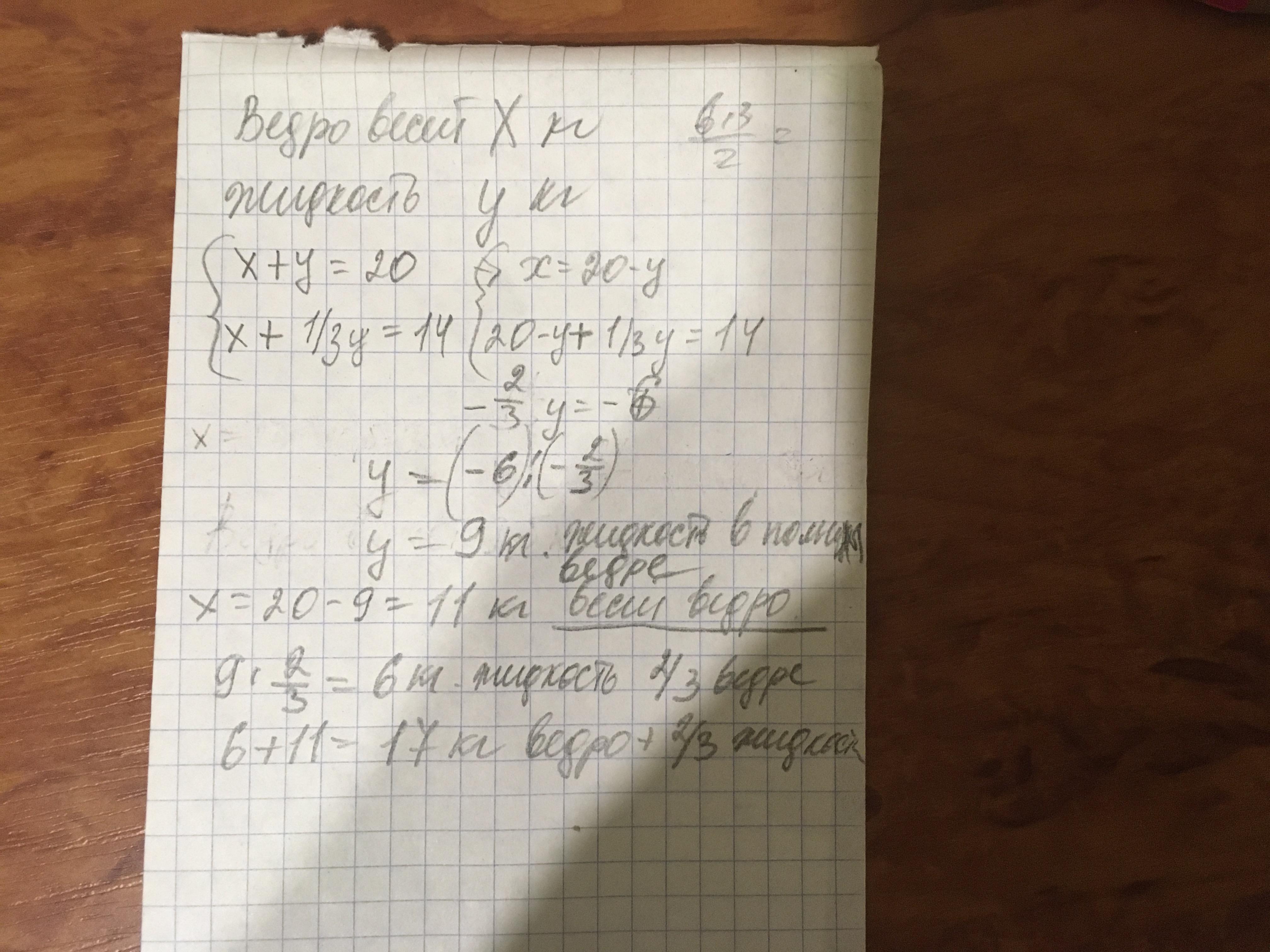 треть, — 14 кг. Сколько будет весить ведро с жидкостью, наполненное на две