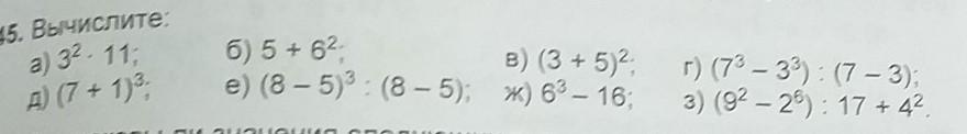 г) = ( 7 * 7 * 7 - 3 * 3 * 3) : 4 = (49 * 7 - 9 * 3) : 4 = (343 - 27) : 4 = 316 : 4 = 79