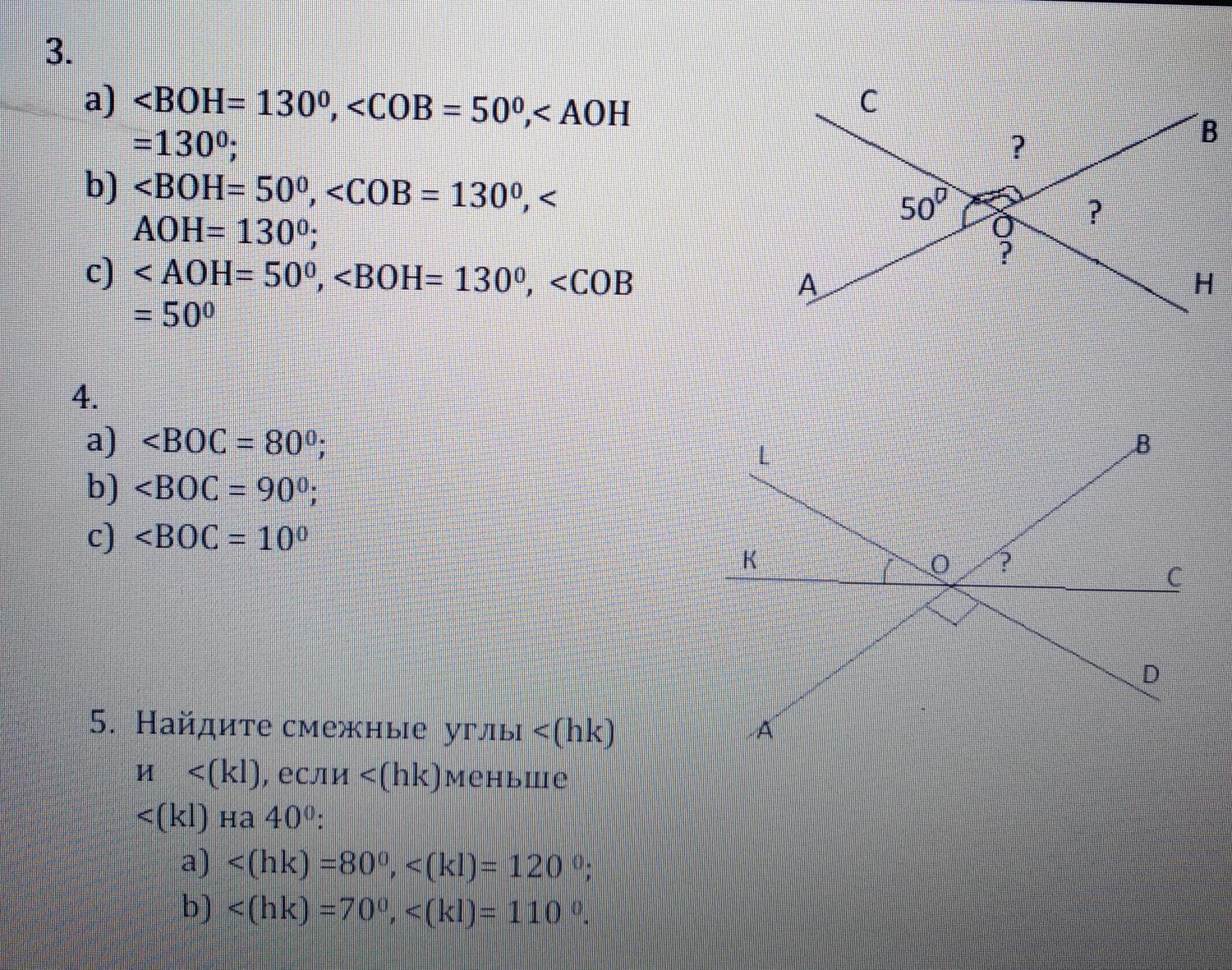 Ответьте 4 и 5 номер теста с решением. Тема смежные и вертикальные углы