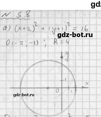 Точка с координатами (- 2 ; - 1) - это координаты центра. Эту точку надо отметить в координатной плоскости и начертить окружность радиуса равного 4 . Этот рисунок неверный, так как на этом рисунке центр лежит в точке (- 2 ; 0) .