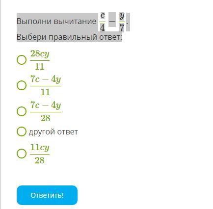 4) Записываем полученные числа в числитель и ставим между ними минус, получается 7с-4у подобные привести нельзя, сократить нельзя, значит это ответ