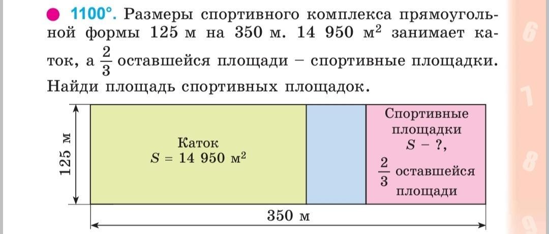 125 × 350 = 43750 м² - размер спортивного комплекса