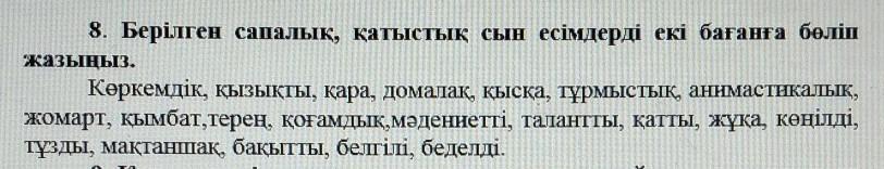 8. Берілген сапалық, қатыстық сын есімдерді екі бағанға бөліп