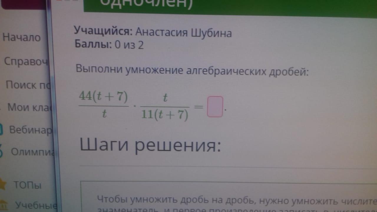 1)сокращаем t и t , (t +7) и (t+7), 44 :11 =4