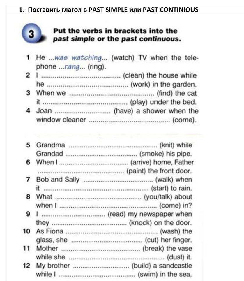 (*) Длинное действие (Past Continuous) прерывается коротким действием (Past Simple);
