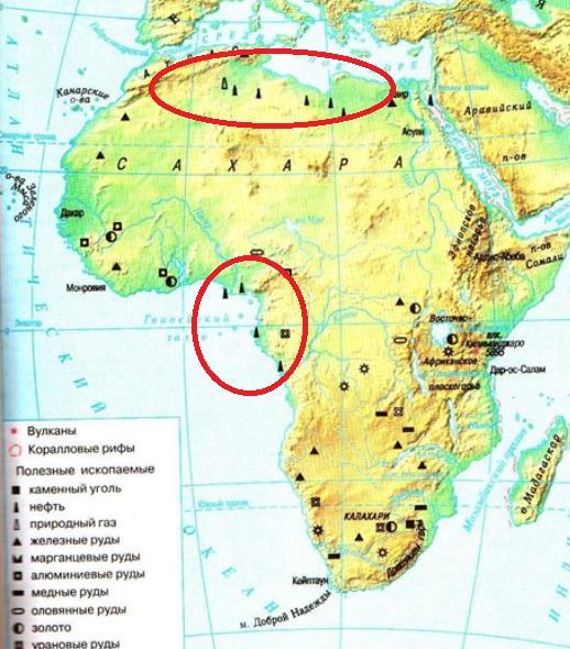 Как видно из карты, которая дана ниже в приложении, на побережье Гвинейского залива и Северной Африки были обнаружены огромные запасы нефти.