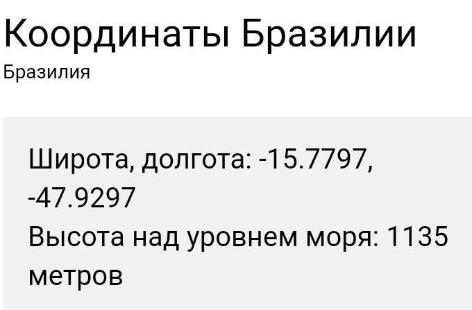 Координаты Бразилиа в градусах и десятичных минутах