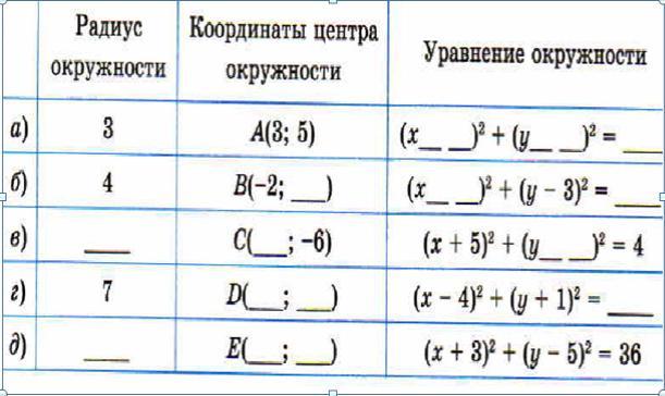 в) 2 C(-5;-6) (x+5) ^2+(y+6) ^2=4