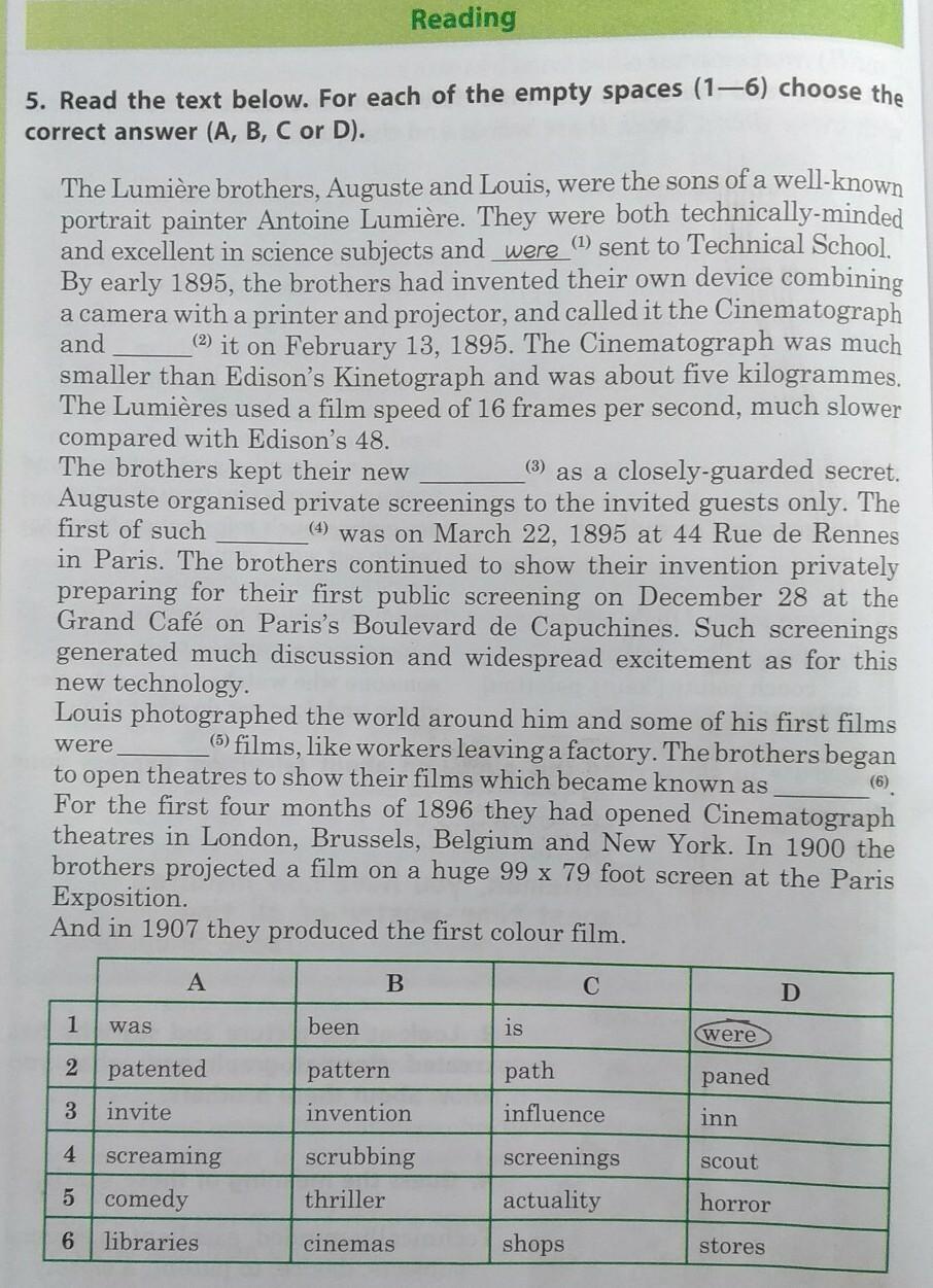 с переводом или, 2C, 3A, 4D, 5C, 6D