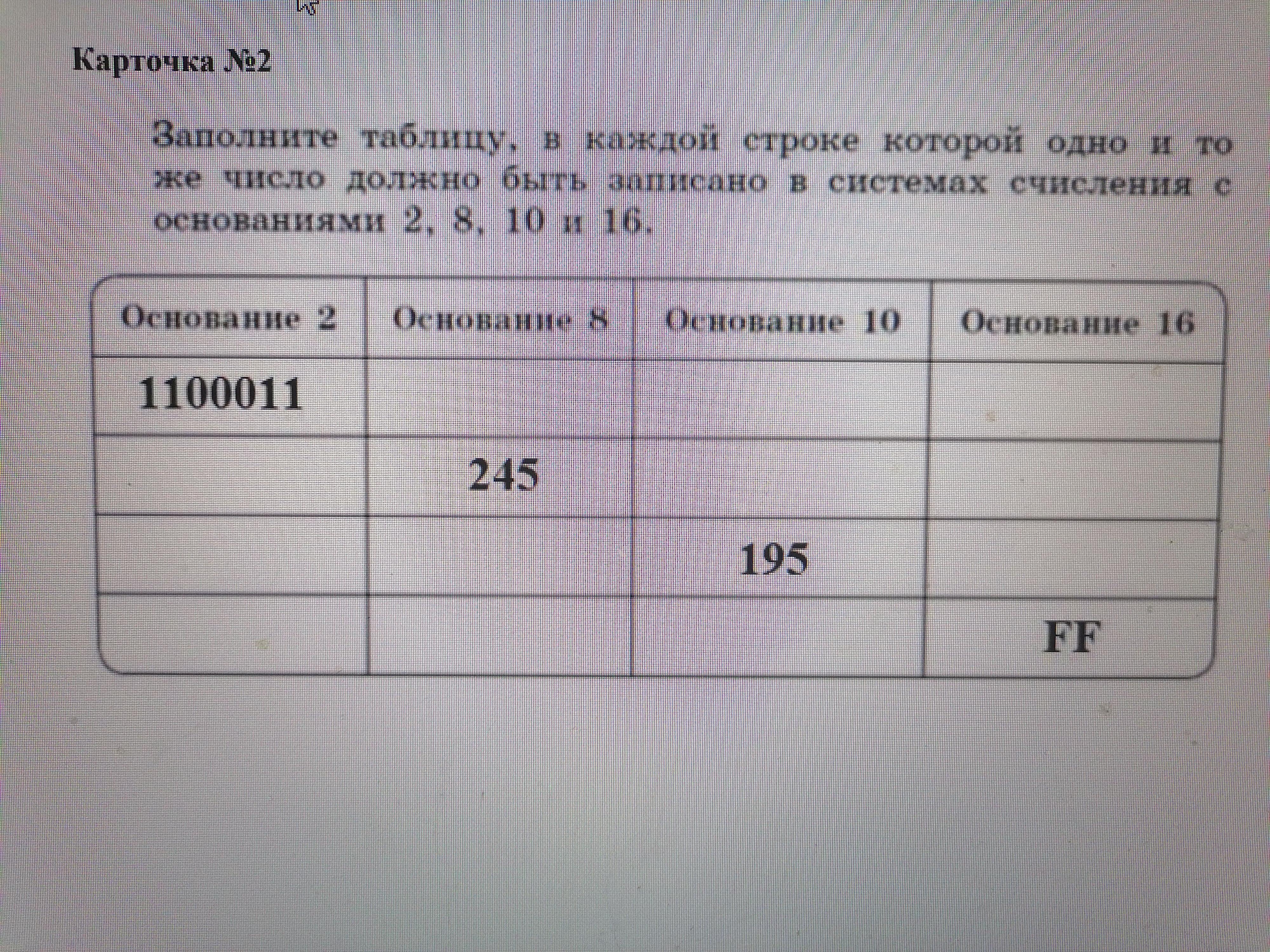 Основание 2 Основание 8 Основание 10 Основание 16