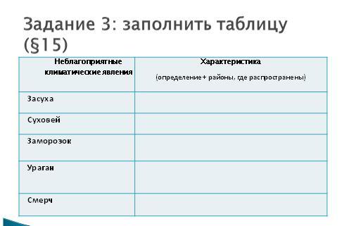 ЗАМОРОЗОК- понижения температуры ниже 0°С, чаще всего встречается весной. (юг Западной Сибири, Южный Урал)