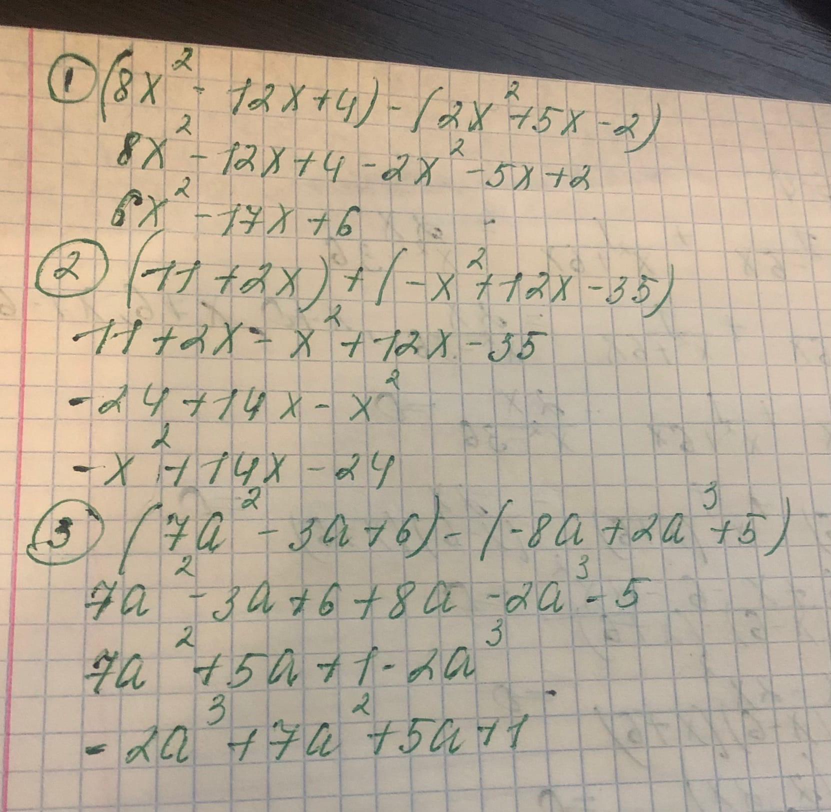 (7а^2-3а+6)-(-8а+2а^3+5)