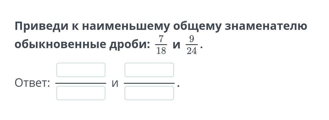 7/18 и 9/24 - наименьший знаменатель это 3/6 3/6