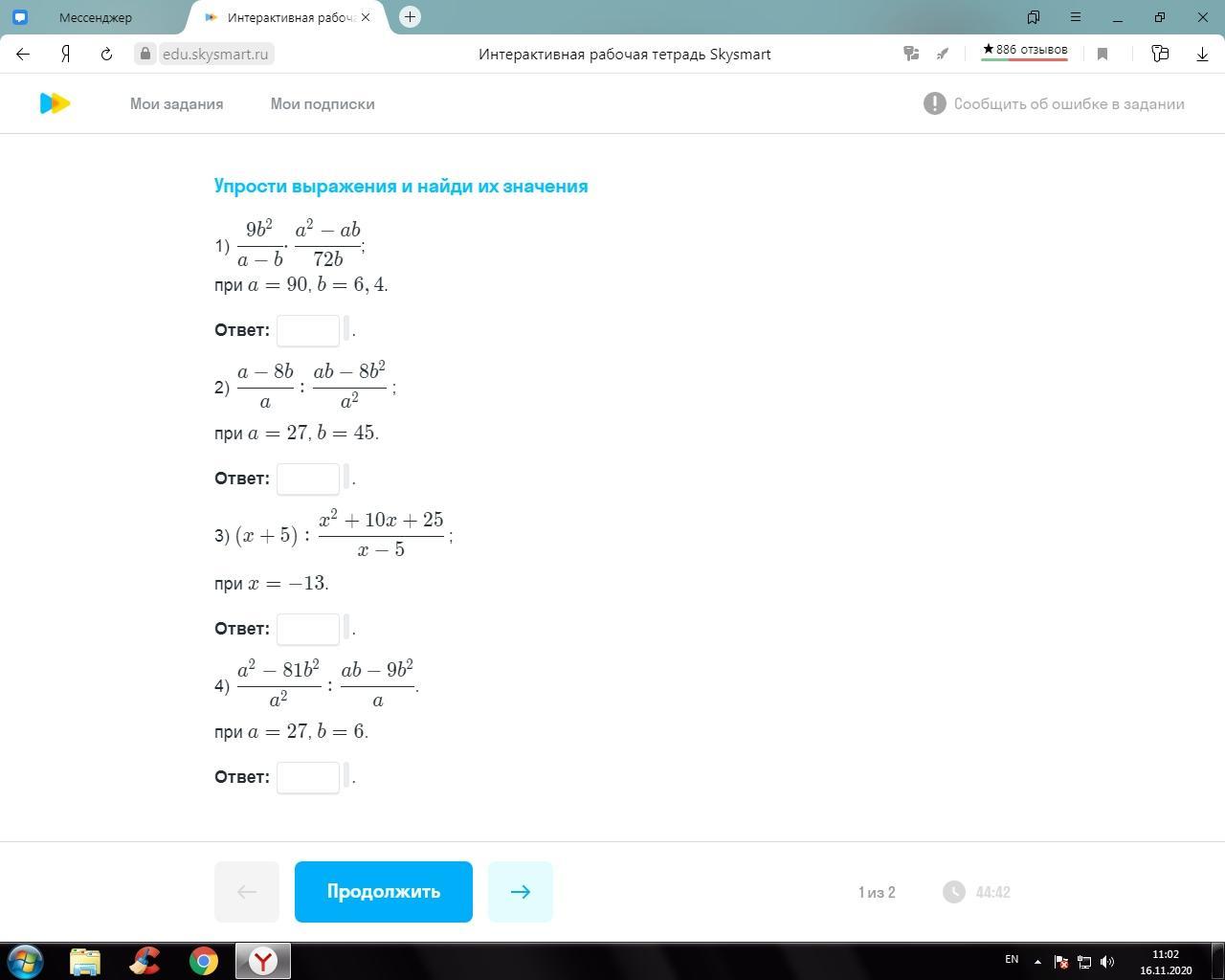 1) 9b²/(a-b) * (a²-ab)/(72b)=