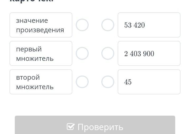 Значение произведение - 2 403 900 Первый множитель - 53 420 Второй множитель - 45