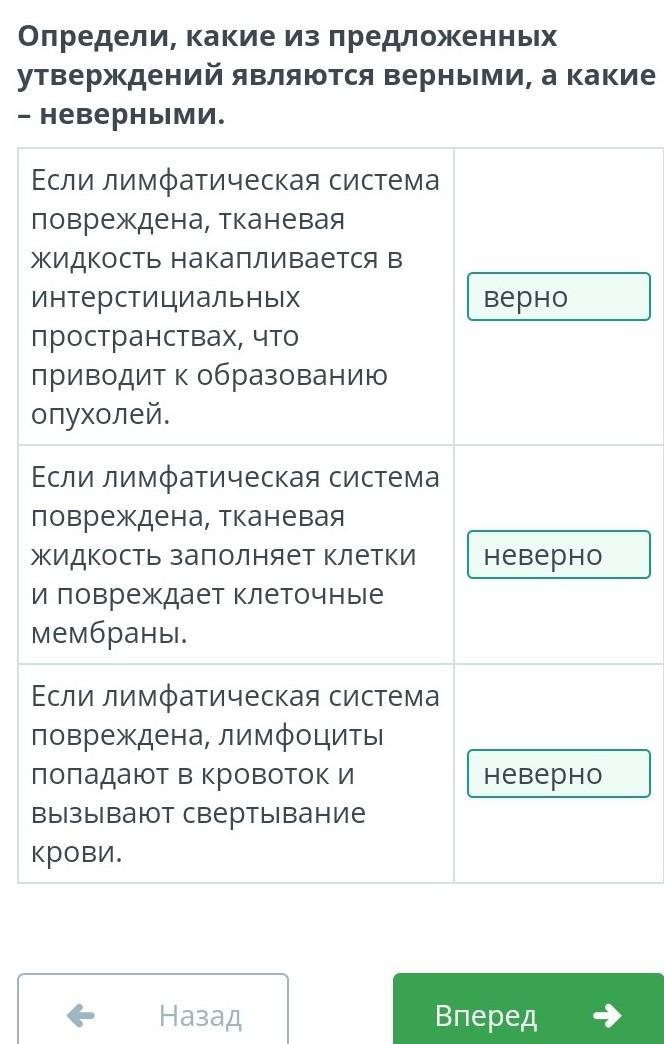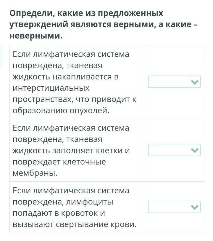Если лимфатическая система повреждена, тканевая жидкость накапливается в интерстициальных пространствах, что приводит к образованию опухолей.верно или неверно.