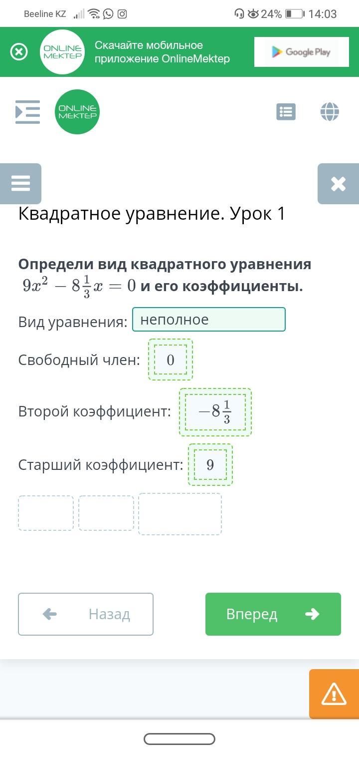 определи вид квадратного уравнения