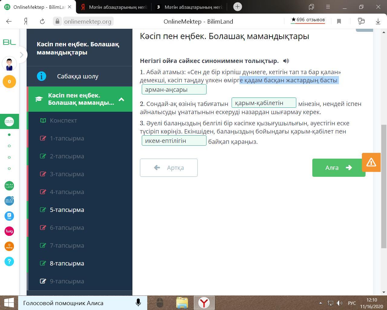 1. Абай атамыз: «Сен де бір кірпіш дүниеге, кетігін тап та бар қалан» демекші, кәсіп таңдау үлкен өмірге қадам басқан жастардың басты