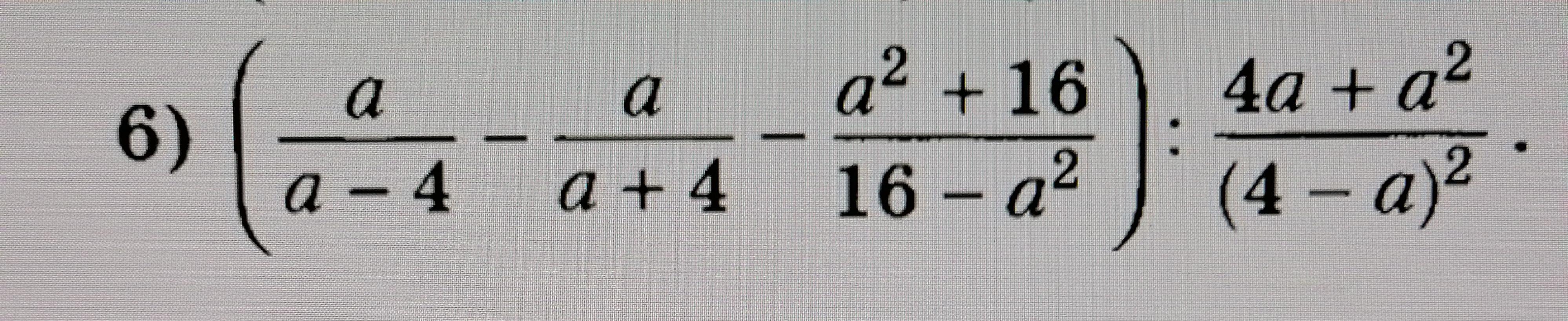 1) a/a-4 -a/a+4 +(a^2+16)/(a-4)(a+4) =(a*(a+4) -a*(a-4)+a^2+16)/ (a-4)(a+4)=