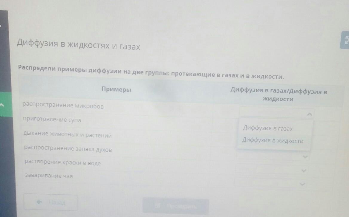Ответ:диффузия в жидкостях:приготовление супа,расстворение краски в воде,заваривание чая.