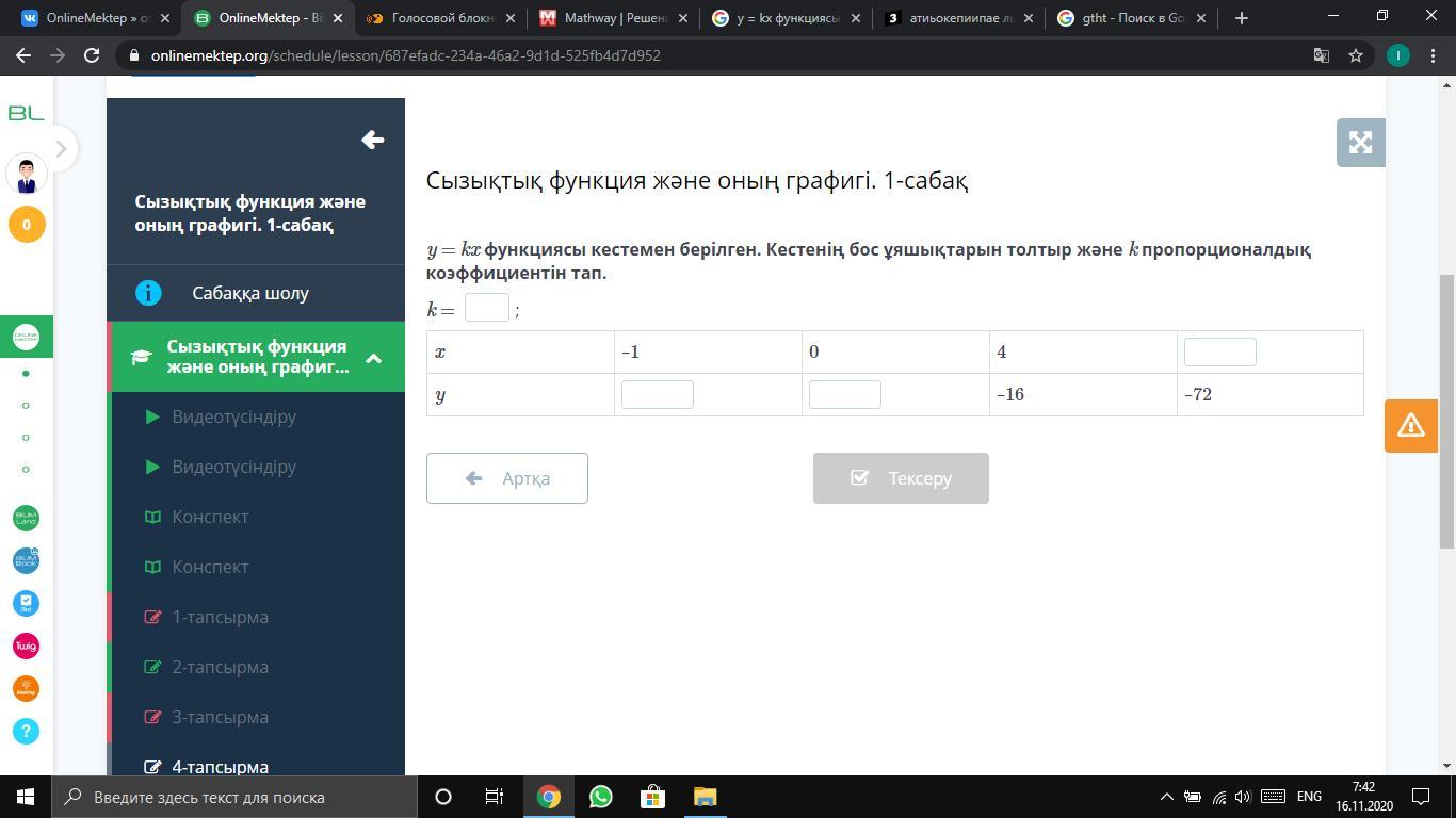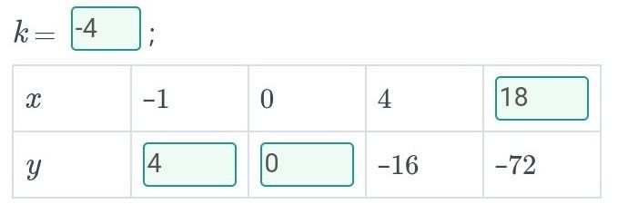 Функция y = kx приведена в таблице. Заполните пропуски в таблице и найдите коэффициент пропорциональности k.