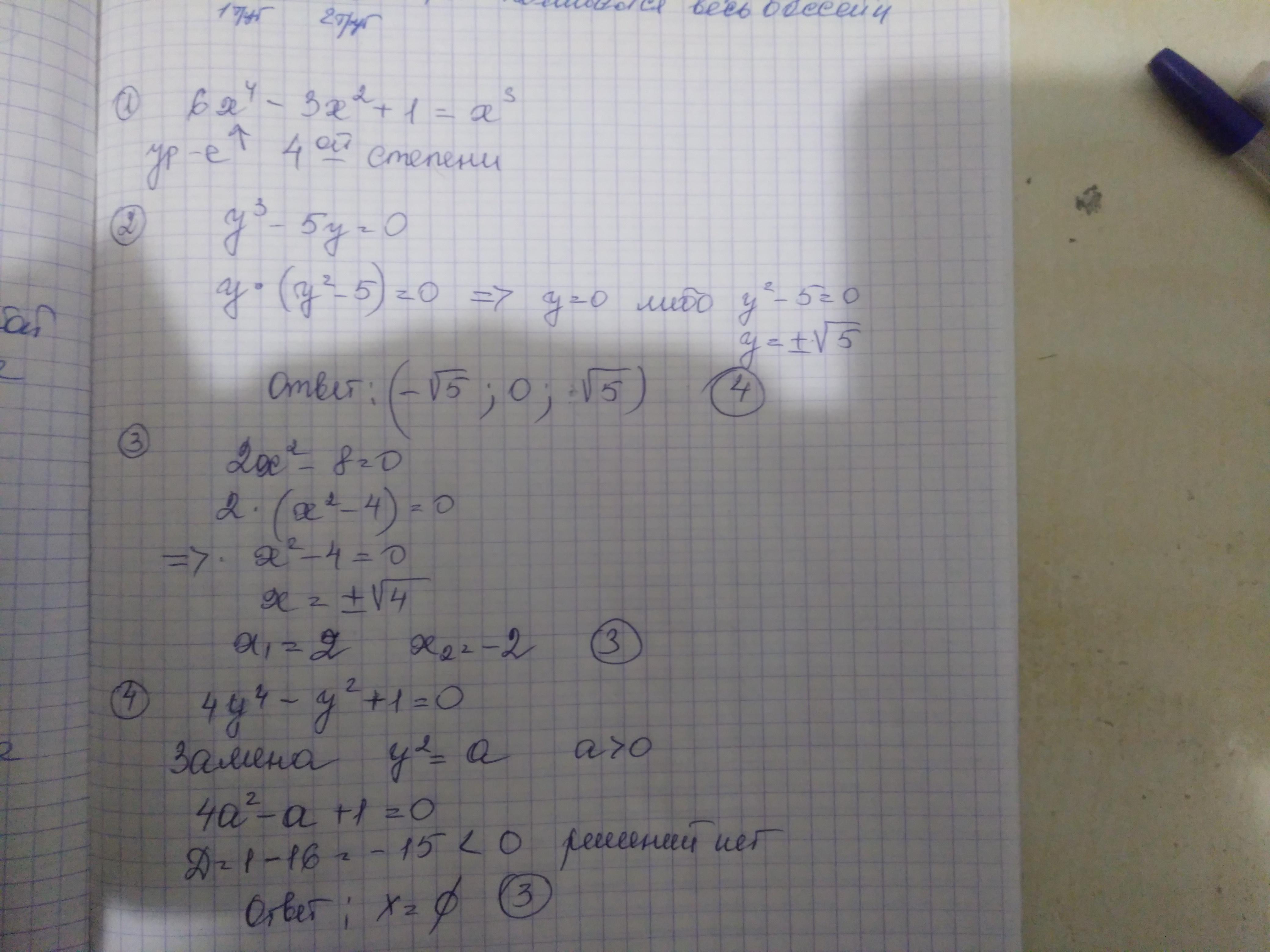 4. Сколько различных корней имеет уравнение 4у4− у²+1= 0?