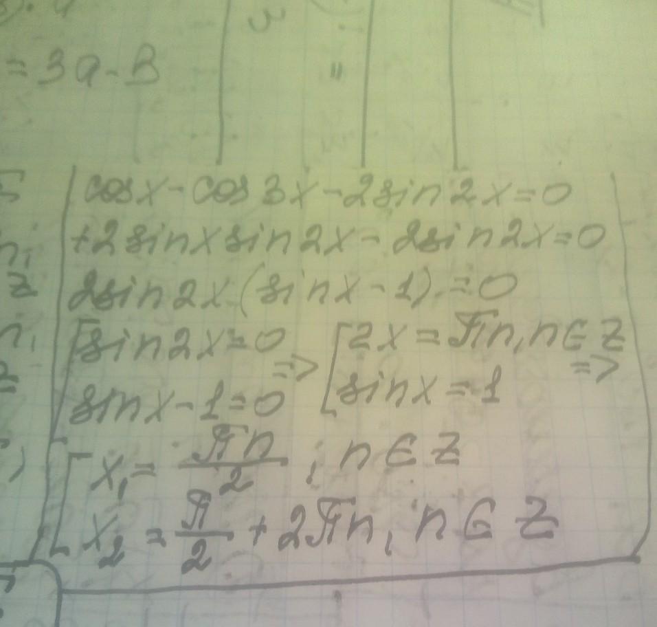 \cos(x)  -  \cos(3x)  - 2 \sin(2x)  = 0