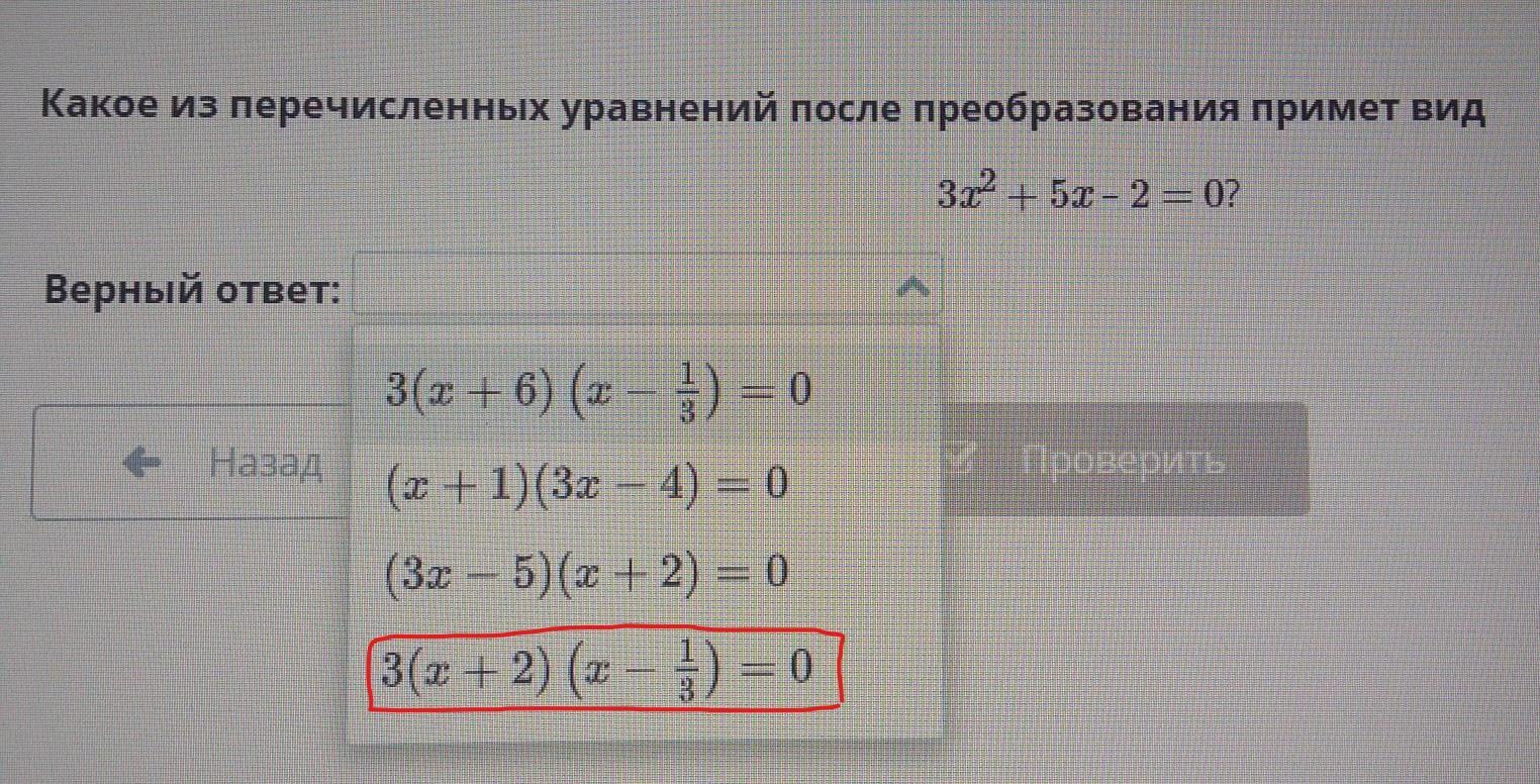 3х2 + 5х – 2 = 0?